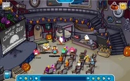 Bom essa com certeza foi uma das melhores festas de Halloween até hoje, feitas pelo CP! Ela teve a maior mudança de um ano para outro! Decoração estava ótima, tinha mais pinguins presentes e principalmente teve a primeira caça aos doces do CP! Os Free Itens desse Halloween foram os mais conhecidos e os mais 'invejados' de todos: Cesta de Abobora (Forte Nevado) e Cachecol de Halloween (Adquirido depois de acabar a caça aos doces). Uma outra grande novidade desse ano foi o Puffle Amarelo que apareceu pela primeira vez nessa festa! Outra atração foi o lançamento do Noite do Trenó Zumbi que foi sucesso em todos os Halloweens até hoje! Como podem ver nesse ano o CP lançou varias novidades, mas o único ruim dessa festa foi ela não ter uma historia! Confira os principais lugares dessa festa: